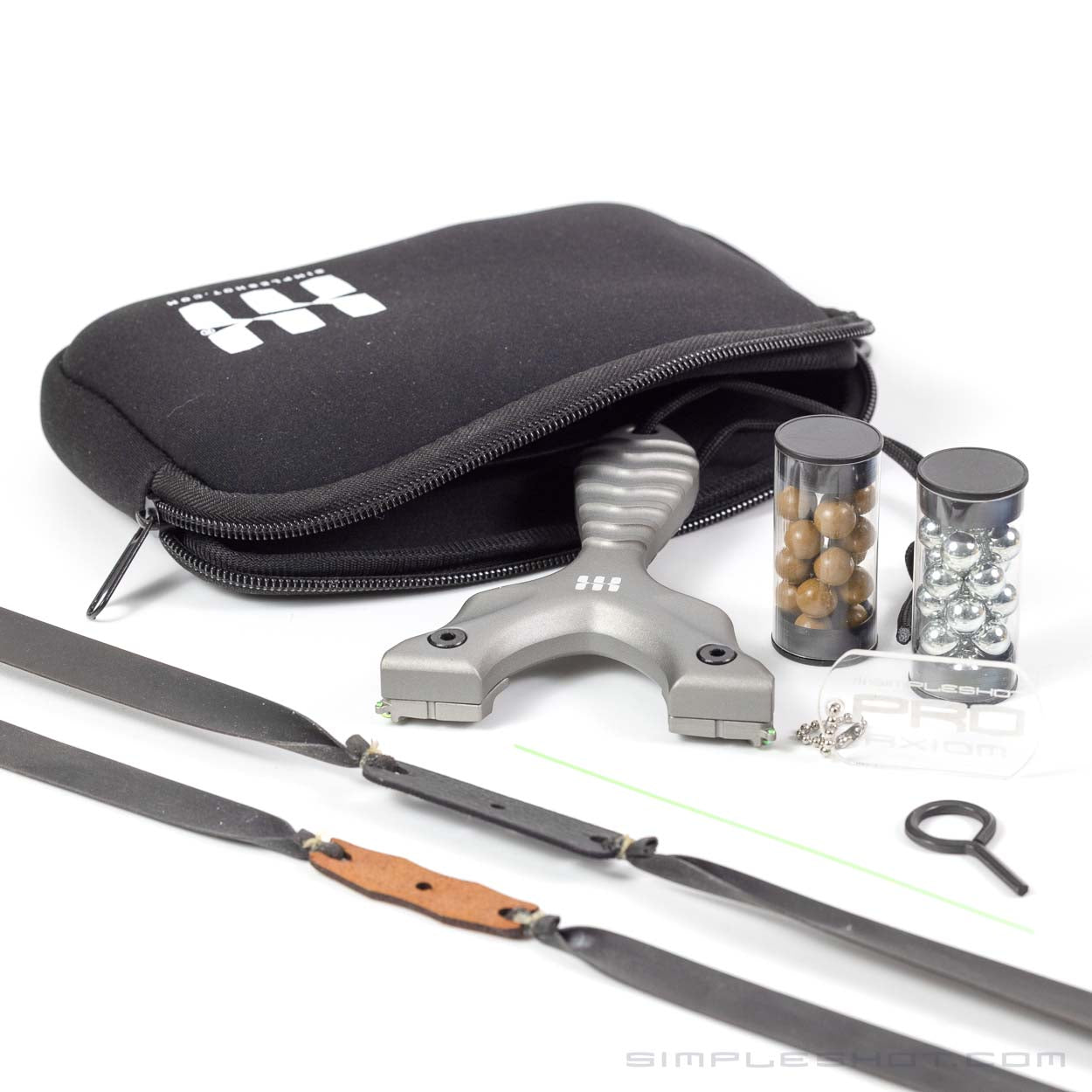 The Axiom PRO takes the proven design of the classic Axiom slingshot and gives it a sleek, hefty upgrade. It’s the same balanced frame, ergonomic grip, and integrated clip band attachment, but now precision-machined from aluminum and finished with a durable hard anodizing process, just like our other top-tier PRO slingshot frames.