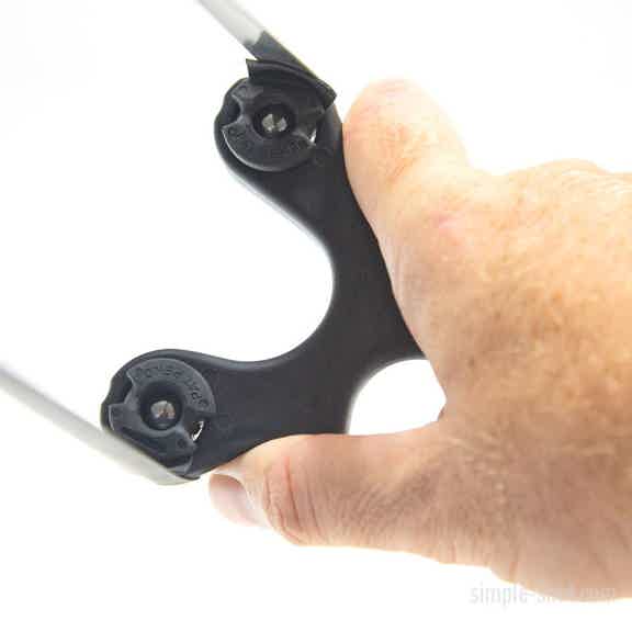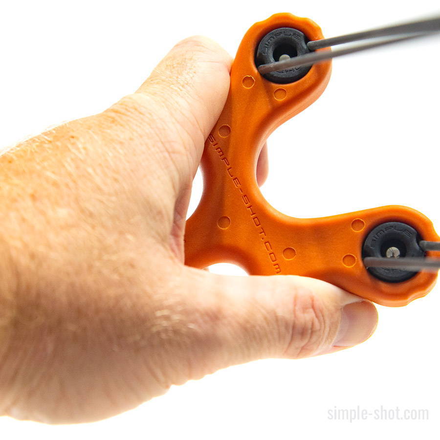 Band orientation where you shoot the ammo through the forks. (Ocularis™ holds the band to the SIDE of the frame.)