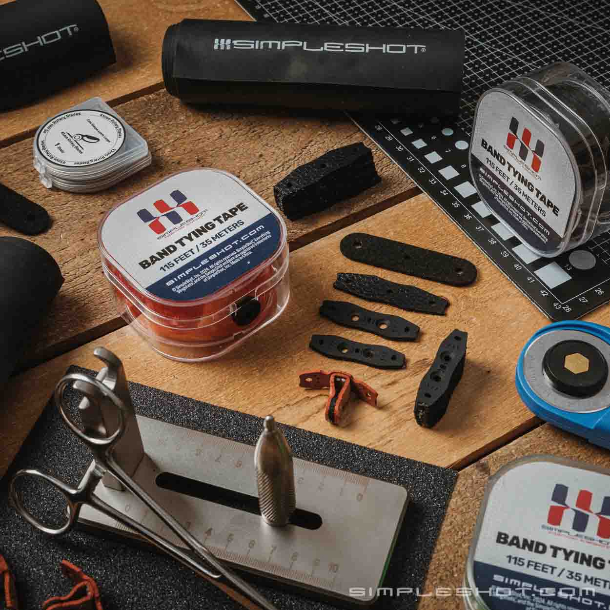 Inside, you’ll find our full lineup of premium latex rolls in multiple thicknesses, precision cutting tools, dispensers, and tying materials, plus a professional-grade jig and accessories to keep your workspace organized. Whether you’re customizing performance or just enjoy the craft of building your own gear, this bundle gives you the tools trusted by the SimpleShot workshop itself.