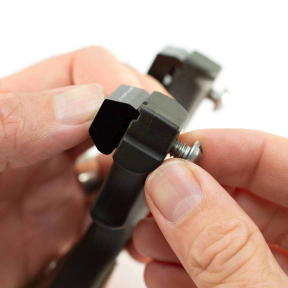 The screw heads must go on the shooter side, NOT the target side! The Clips will be on the target side with the bands wrapping around the frame.
