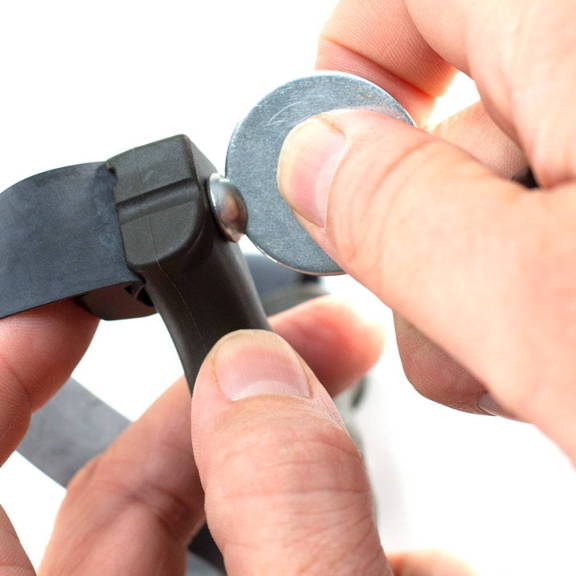 This upper side of the clip is slightly larger and less round. Only use this side to grip the band.