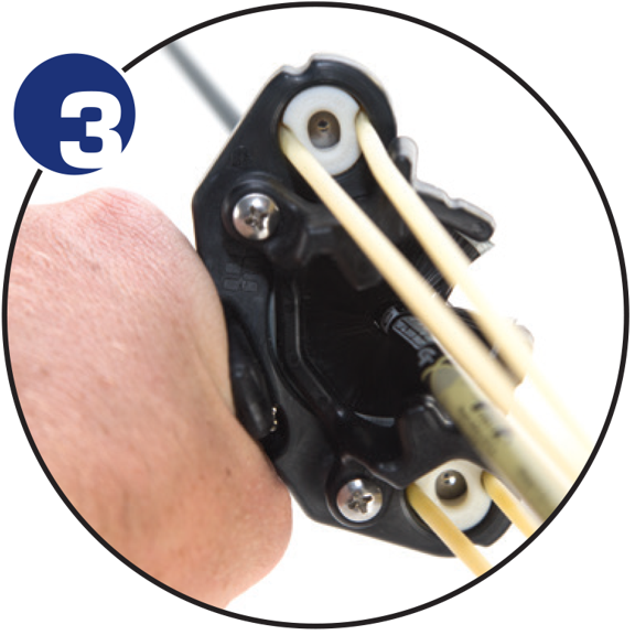 Firmly press the plug into the Ocularis frame, pulling the tubes from the shooter side to seat the plug.