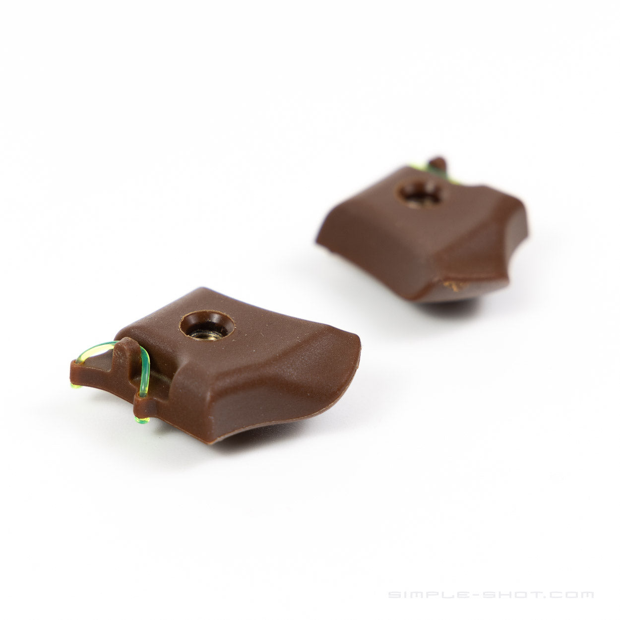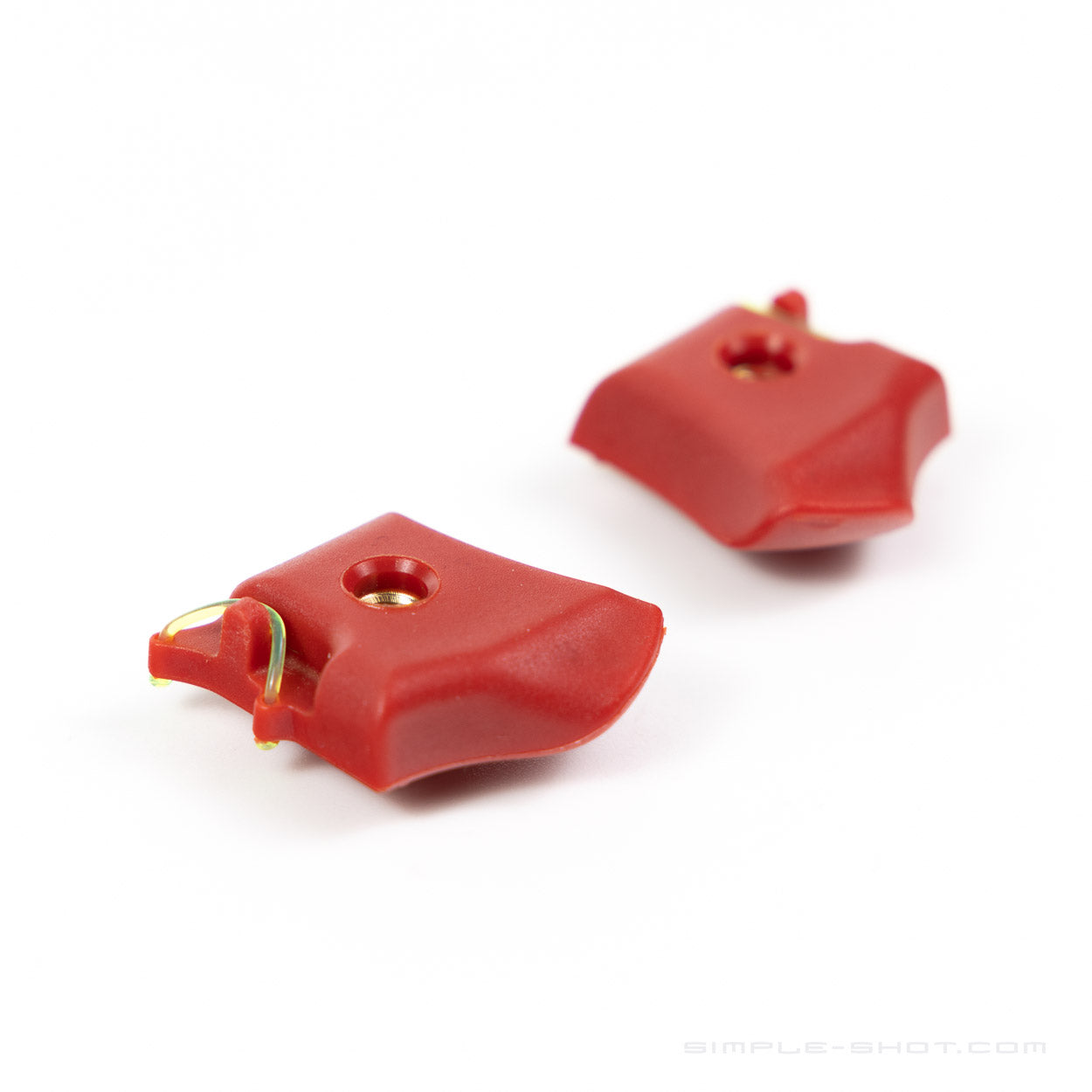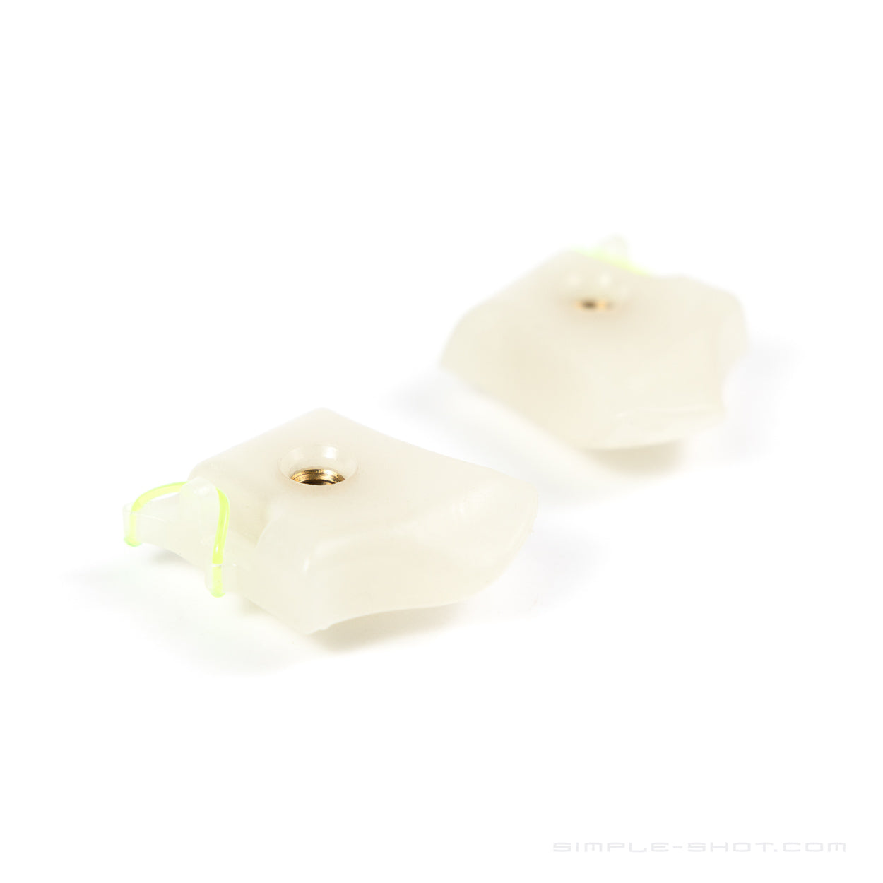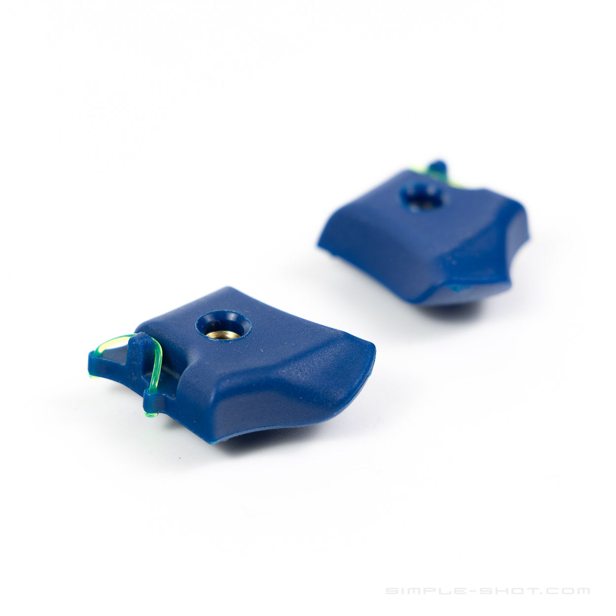 Integrated band attachment clips with recessed fasteners and modern fiber optic sight references for The Scout X Slingshot.