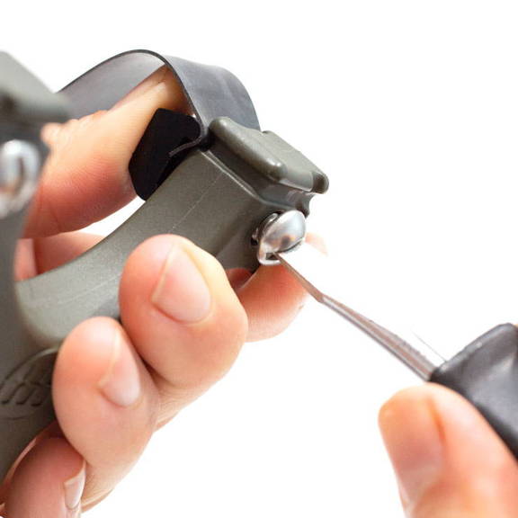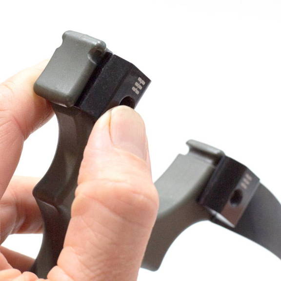 This upper side of the clip is slightly larger and less round. Only use this side to grip the band.