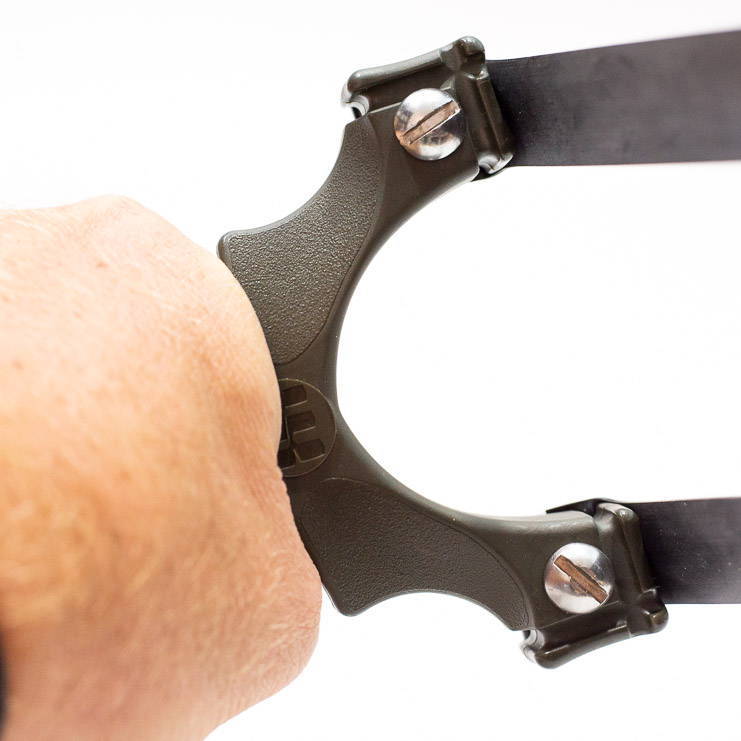 It is critical to always have the lanyard securely wrapped around the wrist when shooting. Serious injury can result from improper use, so make sure you ALWAYS install and use the lanyard when shooting your slingshot!