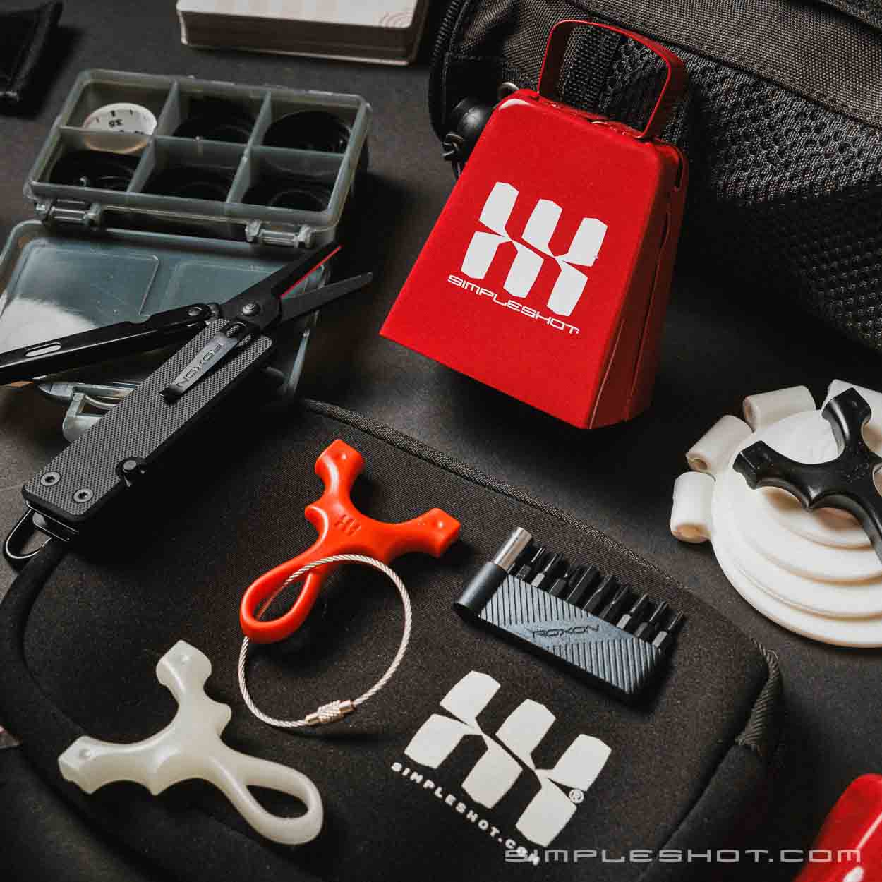 Inside you’ll find some of our most popular accessories, like spinner targets, and the Cocky Wobbler (always a crowd-pleaser). We’ve also included three 5-packs of premium flatbands so you’re never short on replacements, plus a SimpleShot multitool and neoprene pouch for quick fixes and carry convenience.