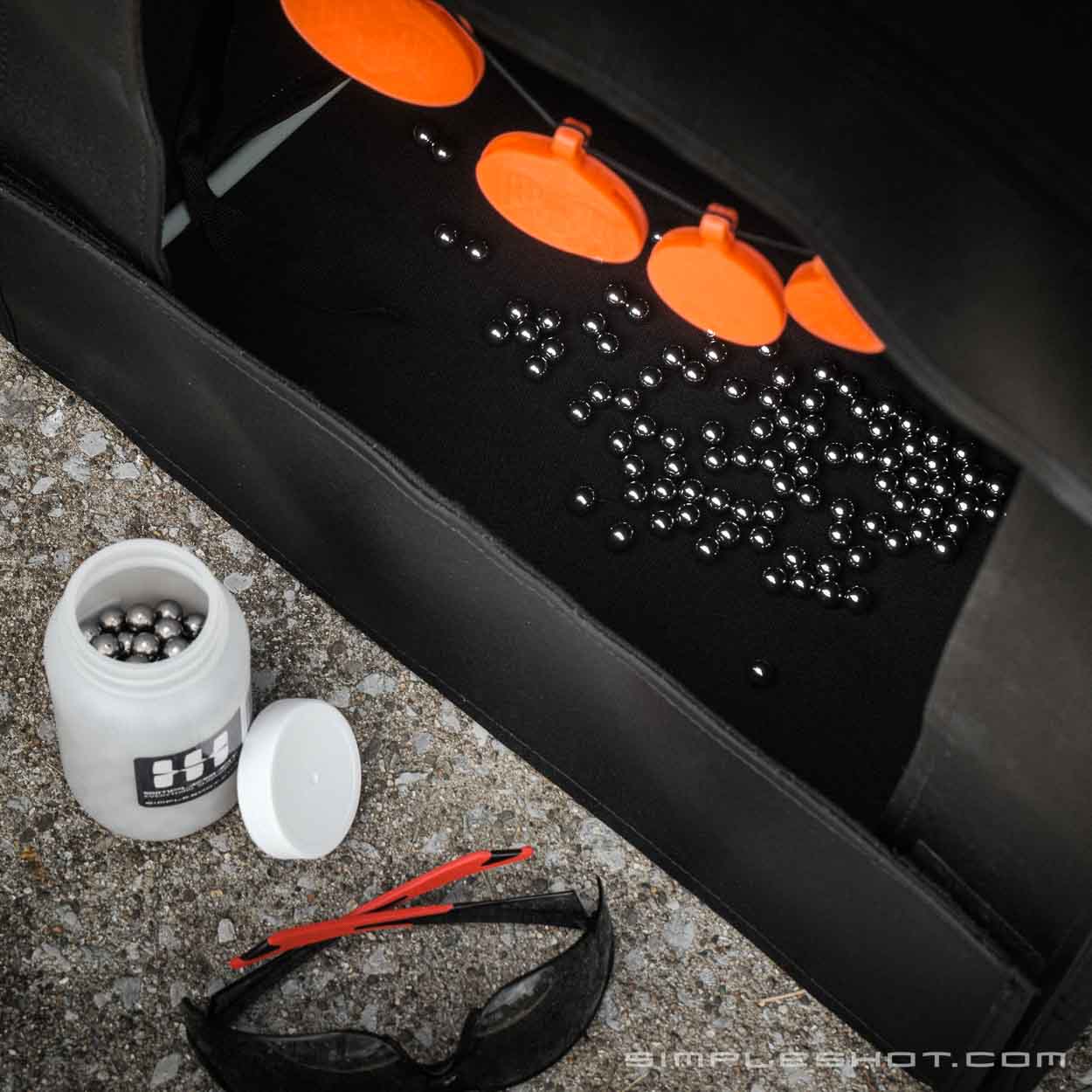 This catchbox comes with a free 5-pack of silicone spinner targets.