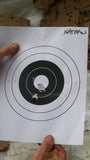 We had a terrific turnout of local slingshot shooters eager to share the fun and fellowship slingshots are so capable of producing. Our youngest shooter was five years old, with our eldest being 81 (Mr. Blue Skeen and he tied for first place!!). Shooters arrived at high noon to test their skill on the Multi Lakes Slingshot Club paper target format- five shots from 10 meters. The center bullseye was worth 10 points, with each circle beyond center worth one less point per ring. If you cut the line, you got the higher score. A perfect score was 50. Nathan Masters and Blue Skeen tied for first place with mutual 47 point scores.