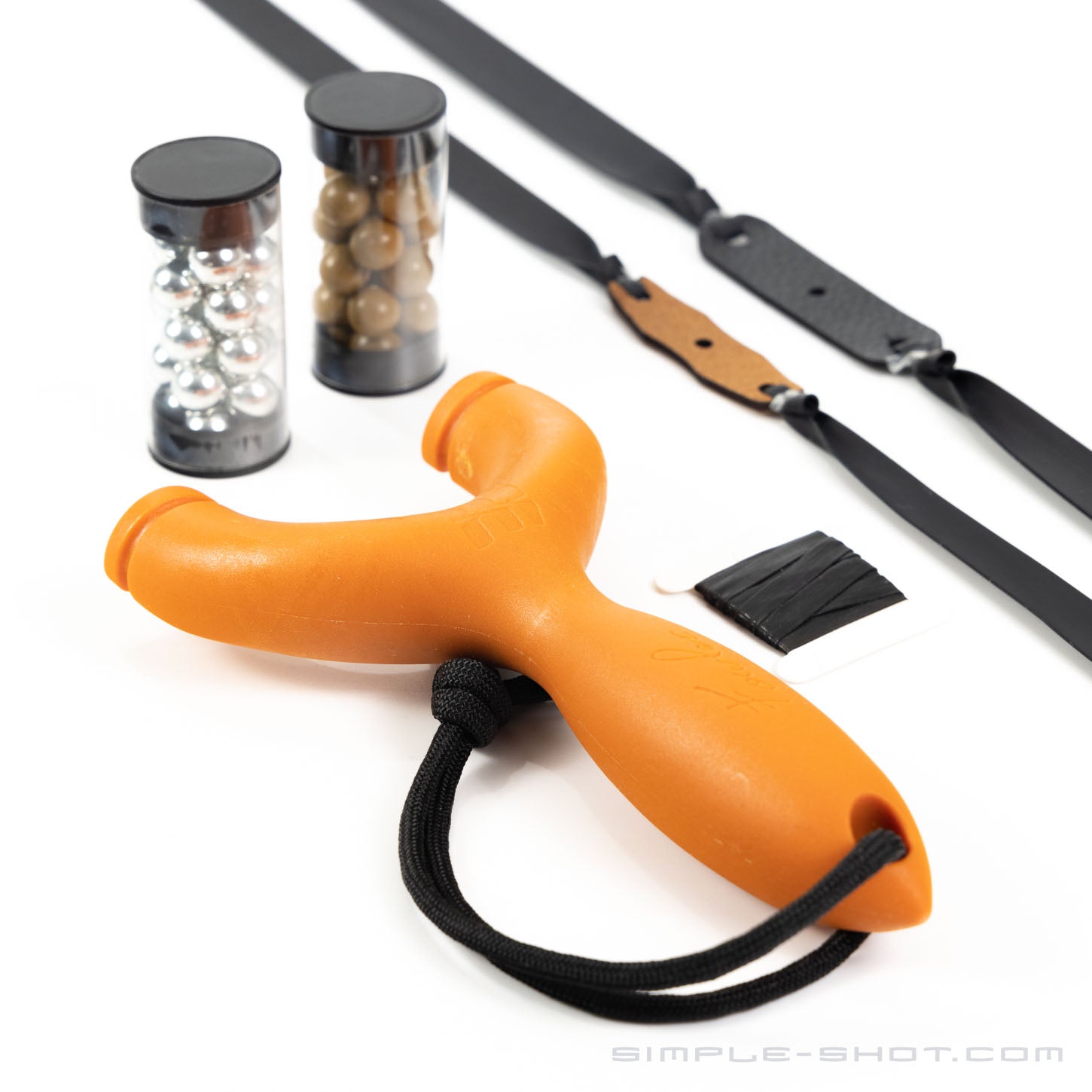 - Complete Shooting Kit: Includes the frame with an attached lanyard, tape for tying bands, two sets of bands (for clay and 3/8" steel ammo), and samples of each projectile type.