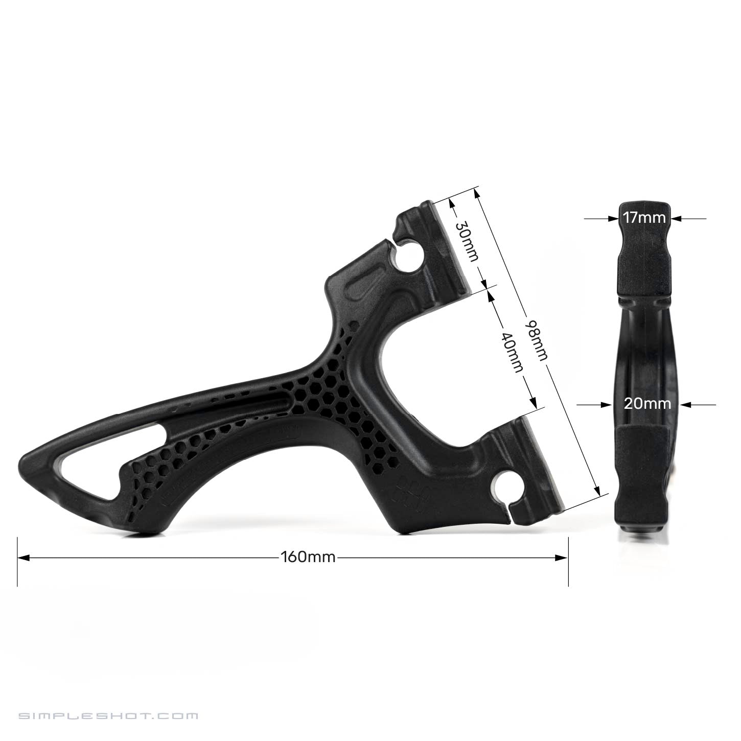 - Asymmetrical Design: Medium-sized, asymmetrical style slingshot that fits average to large hands comfortably.