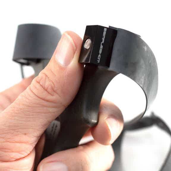 This upper side of the clip is slightly larger and less round. Only use this side to grip the band.