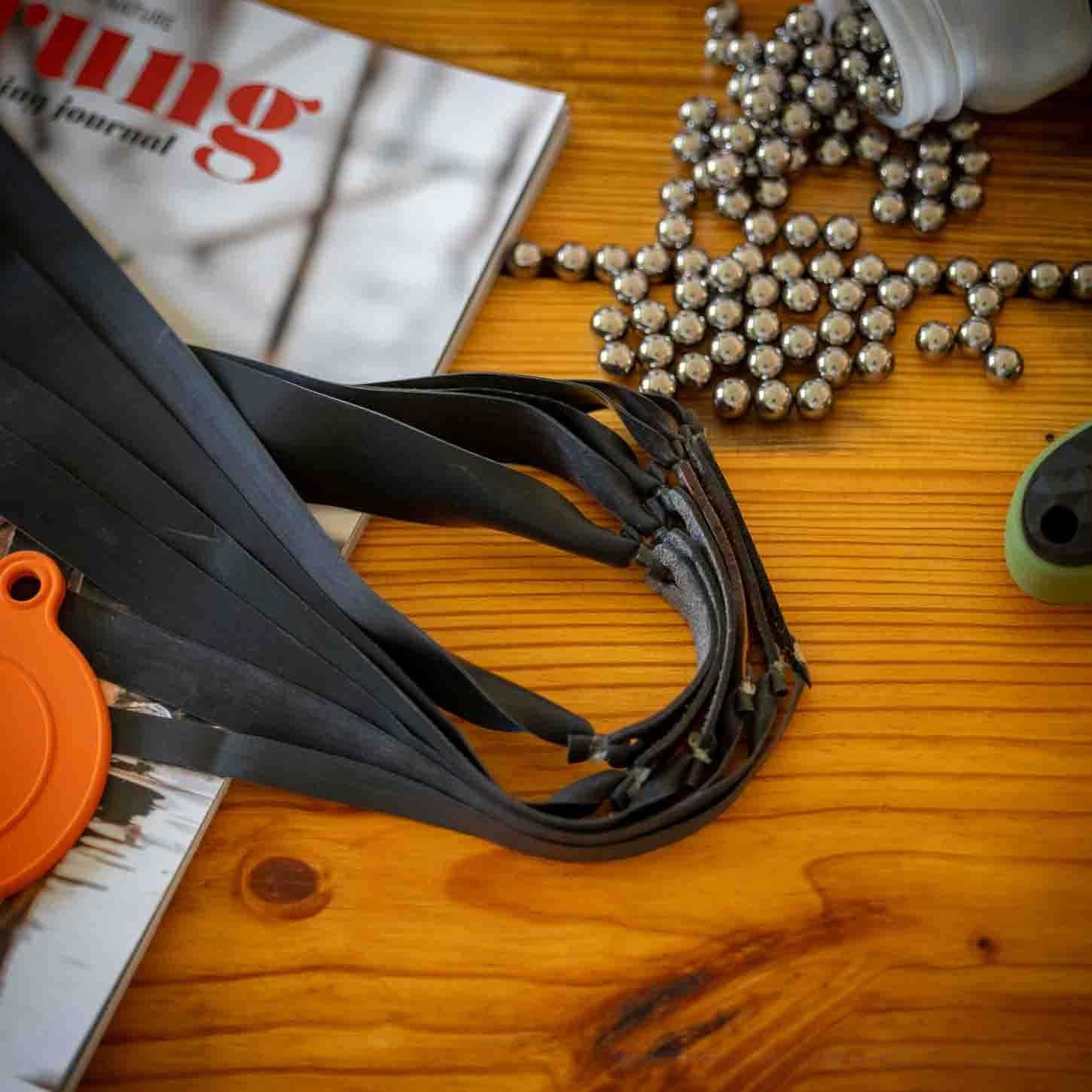 Our latex slingshot bands are offered in various thicknesses SimpleShot Premium black latex.