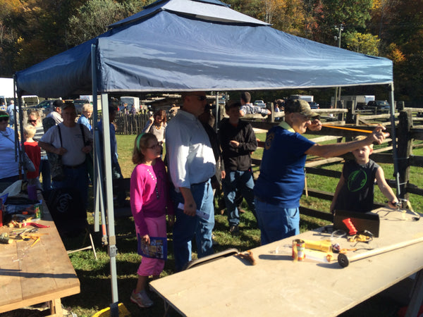 Nathan Masters, founder of SimpleShot and Richard "Blue" Skeen have been on the road and sharing slingshot craft with folks at the Blue Ridge Folklife Festival at Ferrum College in Ferrum, Virginia. Blue has been attending this festival for many years of the 41 year and running annual event. This year he asked Nathan to come along and make treefork slingshots and teach young and old how to shoot. We were right at home with our fellow artists and country folk- from coon dog trials to horse logging to mountain craft such as homemade slingshots, the Blue Ride Folklife Festival has it all. And did we mention all the good vittles?? If you are in southern Virginia next October, this is one event you don't want to miss!